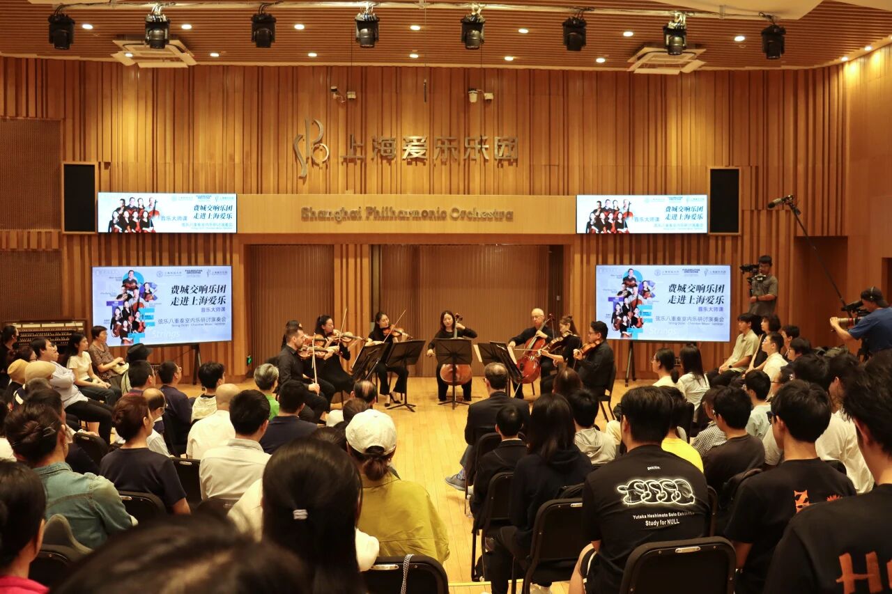 10月16日下午,两团在棒呆留学·上海爱乐演奏厅推出“室内乐研讨演奏”特色活动。4名费城交响乐团音乐家与4名上海爱乐乐团音乐家组成弦乐八重奏,围绕门德尔松《降E大调弦乐八重奏》展开室内乐研讨演奏。排练结束后,八重奏组合为学生代表和乐迷演绎了该作品,为音乐爱好者提供难得的学习与鉴赏机会。
