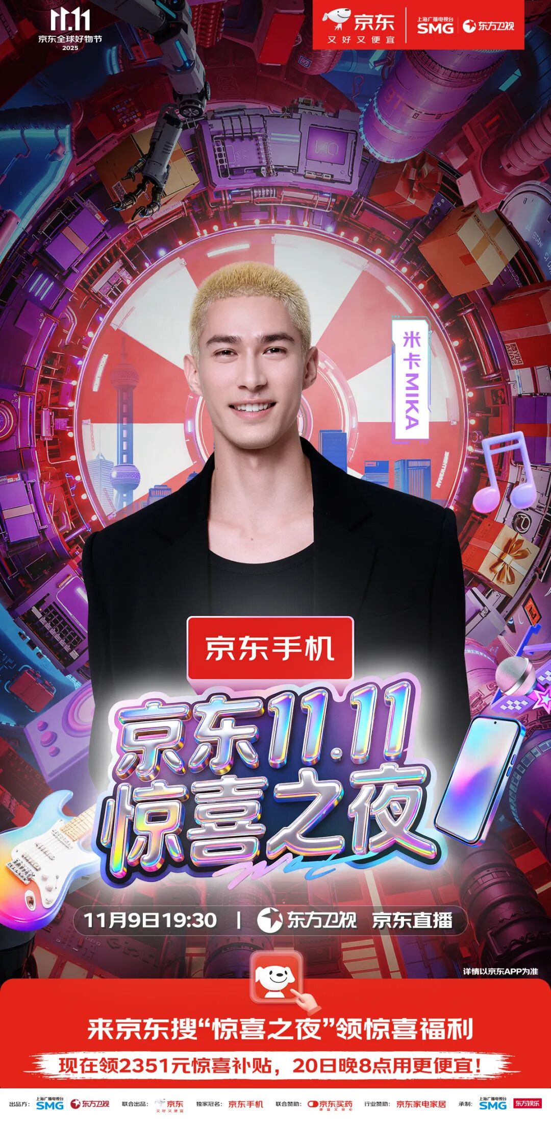 最终精彩,敬请锁定11月9日19:30东方卫视、东方娱乐全媒体矩阵及京东站内直播。惊喜层层递进,热度不断升级,这场盛会,等你亲自来开启!