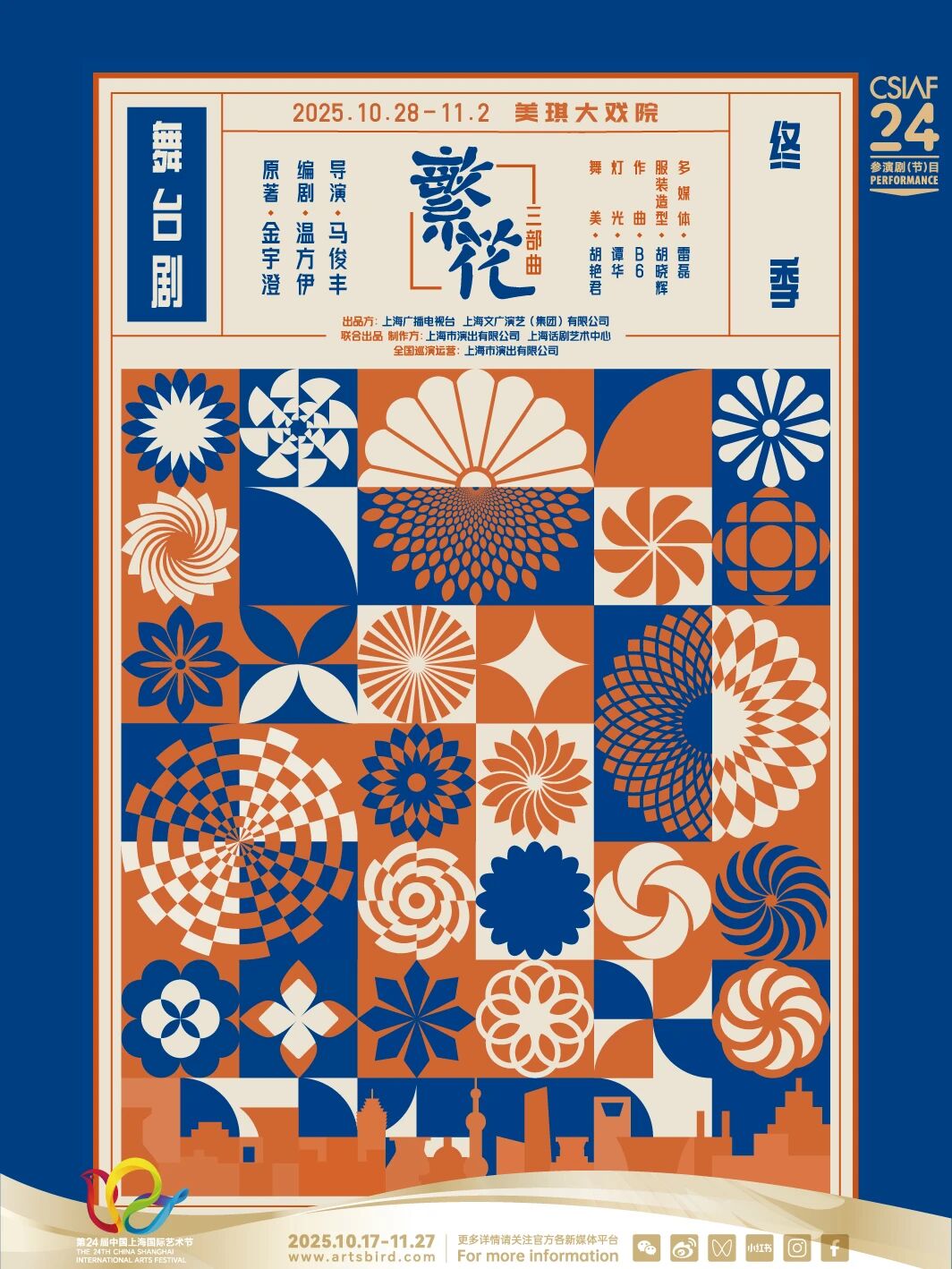 由上海广播电视台、上海文广演艺集团出品,上海市演出公司与上海话剧艺术中心共同制作,舞台剧《繁花》终季即日至11月2日首轮献演8场。
