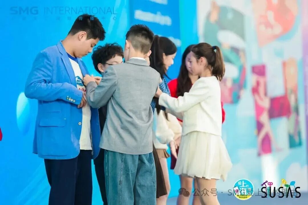 为持续赋能青少年表达,活动现场还公布了第二批“国际传播青少年推广大使”名单。雷昕怡(“爱上海的理由”第一季冠军)、金宜成、顾慈墨、陈纪宇及Leon Alexander Sebastiansson(冰岛)五位同学获选。由首批大使为他们佩戴徽章,全体大使共同接受新一年度聘书,象征着“爱上海的理由”传播队伍薪火相传、日益壮大。上海市延安初级中学及上海市长宁区天山第一小学入选“青少年国际传播实践基地”。