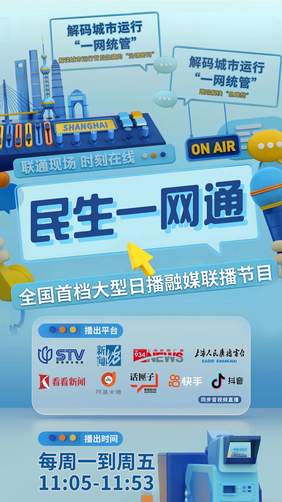 由上海广播电视台融媒体中心、东方广播中心联合上海十六区融媒体中心共同打造的全国首档大型日播融媒联播节目《民生一网通》,自2020 年11 月30 日开播以来,已满五周年。