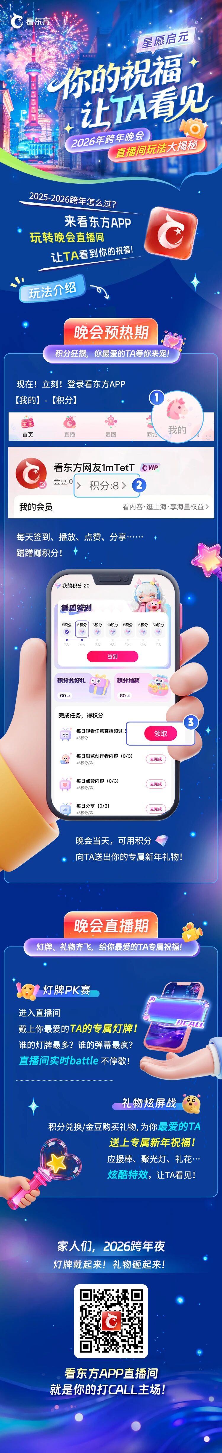 如果还没有,那么请注意——你专属的“跨年狂欢胜地”已准备就绪!看东方APP全新升级,重磅推出2026年跨年晚会直播间互动活动,只为让你的每一次互动都更有趣、每一份热爱都被看见、每一次参与都有回报!