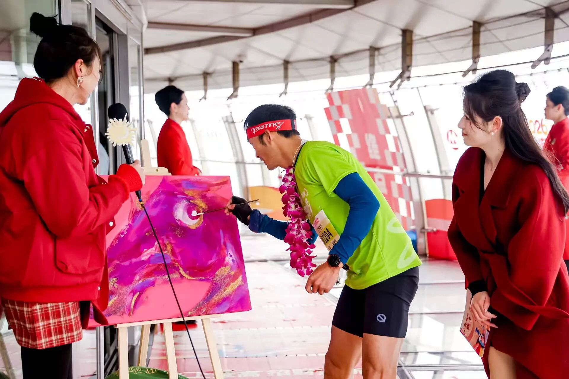 在延续传统赛事的基础上,今年活动深度融合文化展演与艺术互动,打造“体育+文艺+潮流”多元融合的迎新盛宴。开场节目《梦起东方》用音乐串联起东方卫视全面焕新以来多个综艺及线下活动IP。伴随着发令枪响,选手们从东方明珠城市广场出发,分别向259米全透明悬空观光廊与90米户外观光廊终点发起挑战。现场还特别设置“新年第一笔”环节,邀请冠军选手与潮玩艺术家于高空共同创作新年祝福画卷,寓意艺术与体育共攀新高。