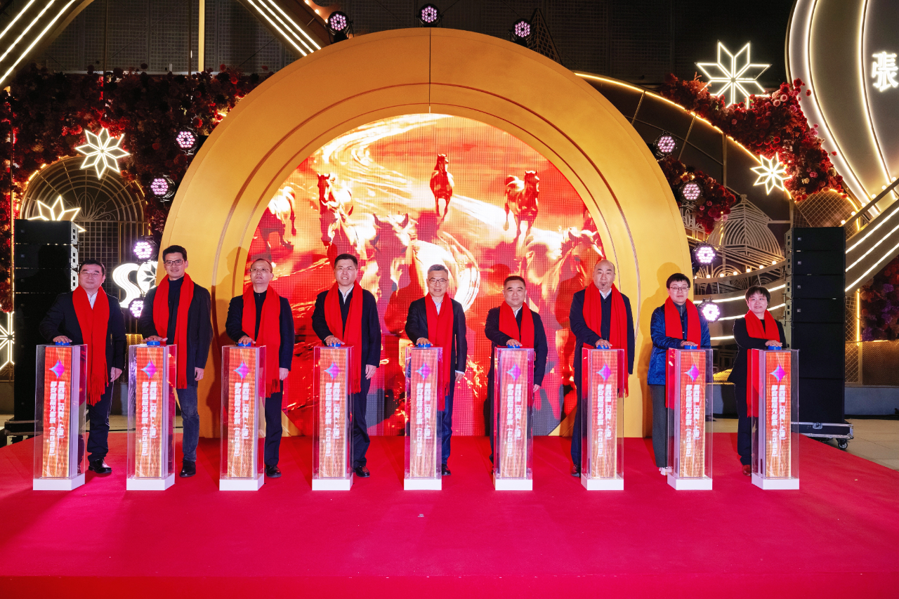 2月14日晚,第四届“闪亮·上海”静安国际光影展(2026)点亮仪式在静安区张园西区举行。