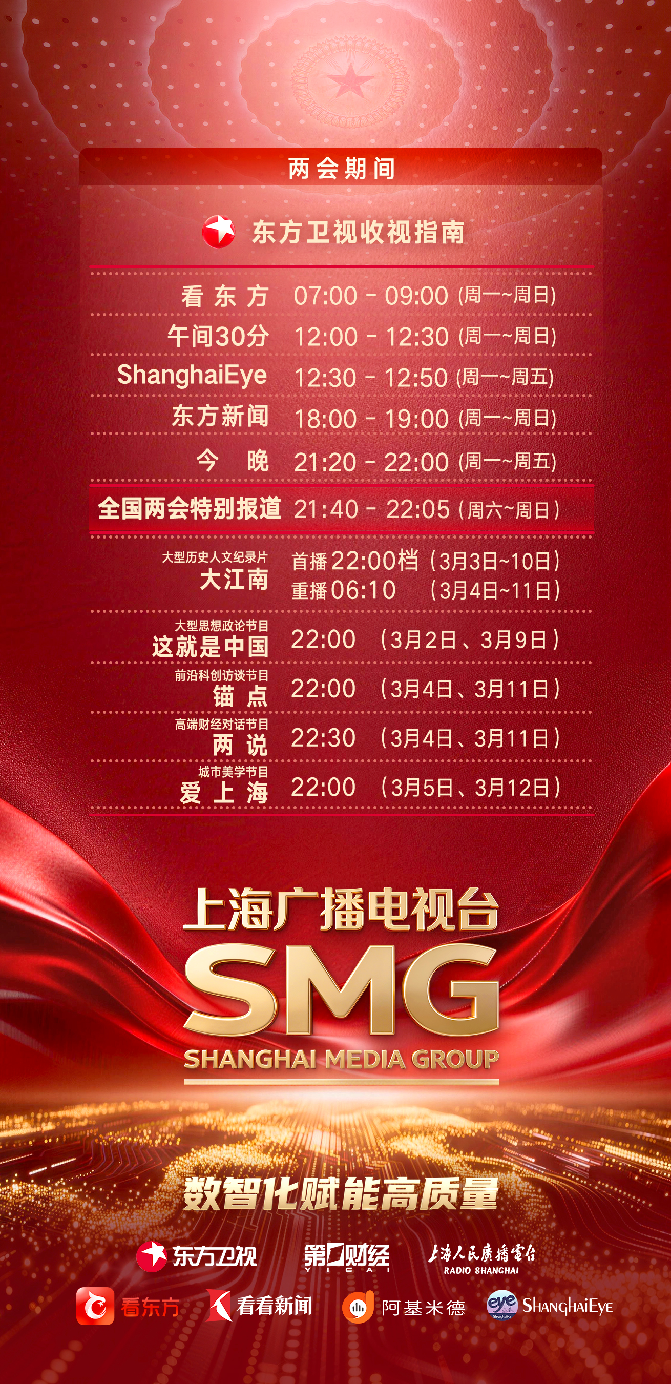 值得一提的是, 为喜迎2026全国两会营造浓郁氛围,上海广播电视台全程全媒报道全国两会的主题海报和宣传片,日前已火红亮相上海热门商圈、繁华地段和国际机场等交通枢纽,“看两会 看东方”氛围感全线拉满!