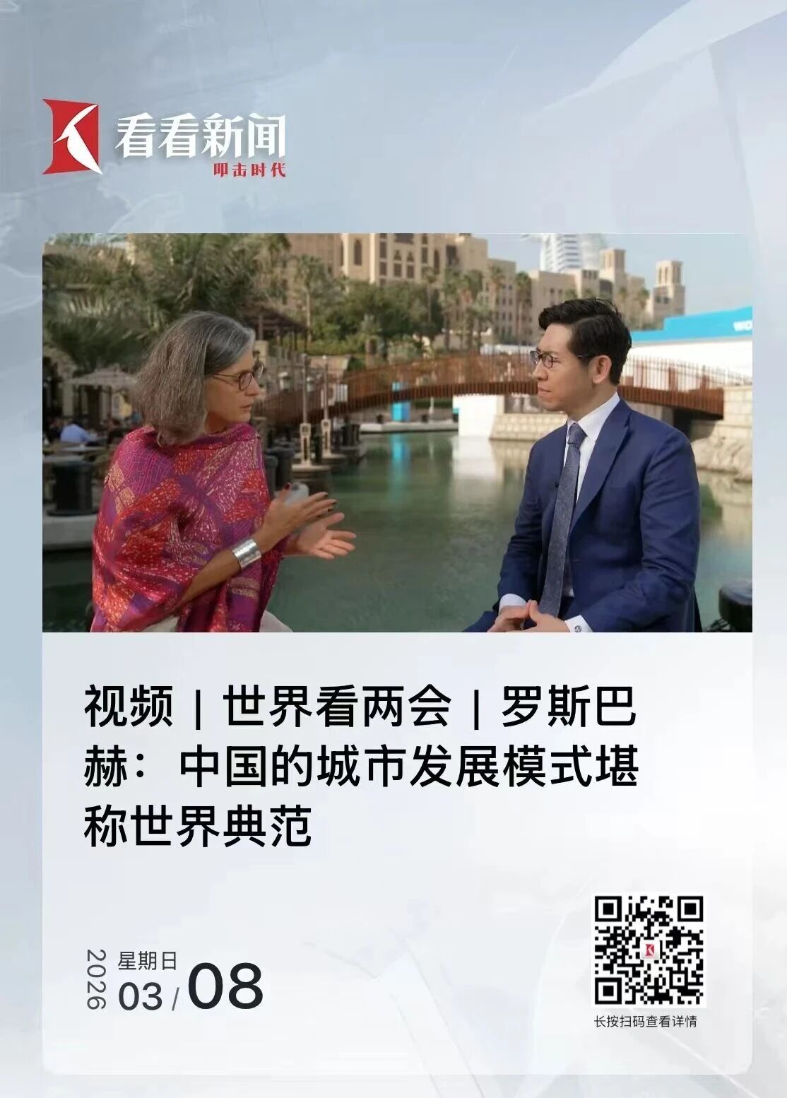 东方卫视、ShanghaiEye《DIALOGUE丨世界看两会》推出第4集《罗斯巴赫:中国的城市发展模式堪称世界典范》,对话联合国副秘书长、人居署执行主任罗斯巴赫,聚焦中国城市发展、中国大国外交进行深度访谈。罗斯巴赫以国际视角点评中国城市发展成就,让“中国方案”更具有说服力。