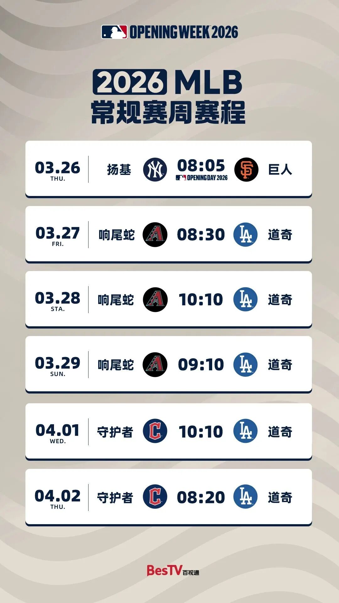 北京时间3月26日,美国职棒大联盟(MLB)2026新赛季燃情启幕。步入双方战略合作的第六个赛季,东方明珠旗下百视通作为MLB在国内的重要合作平台,以全方位升级的转播体验、多元化的高品质内容、沉浸式的互动观赛场景,通过IPTV、官网等多平台全程高清直播新赛季精彩赛事,为全国棒球迷打造一场融合科技、热血与专业的棒球观赛盛宴。