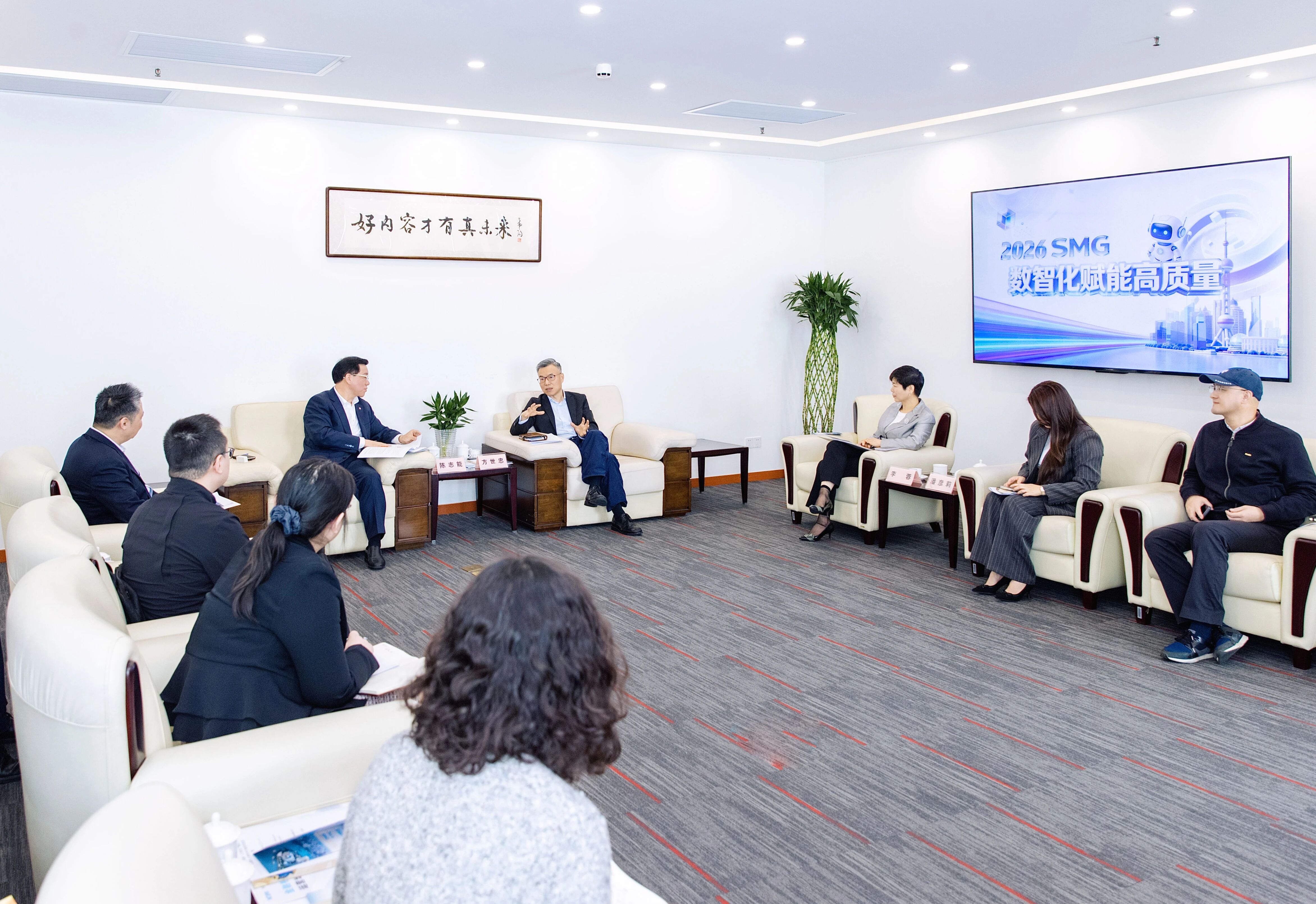 方世忠对陈志能一行的到来表示欢迎。他表示,当前上海广播电视台(集团)正深入推进主流媒体系统性变革,锚定“ALL in AI”主攻方向,加快数智化赋能、信息化转型,做强时政、财经、文化等优势领域传播力量。特别是依托上海作为国内大循环中心节点和国内国际双循环战略链接的城市功能,建强东方卫视全媒体头部平台,打造第一财经新型国际财经媒体集团,讲好中国故事,演绎上海精彩,服务出海战略。方世忠指出,中国银行作为中国全球化和综合化程度最高的银行,深度参与上海“五个中心”建设,与上海广播电视台肩负使命相通、合作基础扎实、优势资源互补。希望双方发挥各自在媒体和金融领域的领先优势,共同增强“媒体+金融”的链主集成能力和全案输出能力,携手进军出海、科创、消费三大生态圈,聚焦企业出海、科技创新、城市消费等重点方向,加强合作、深耕细作、共建共享,助力上海加快建设“五个中心”和国际文化大都市。